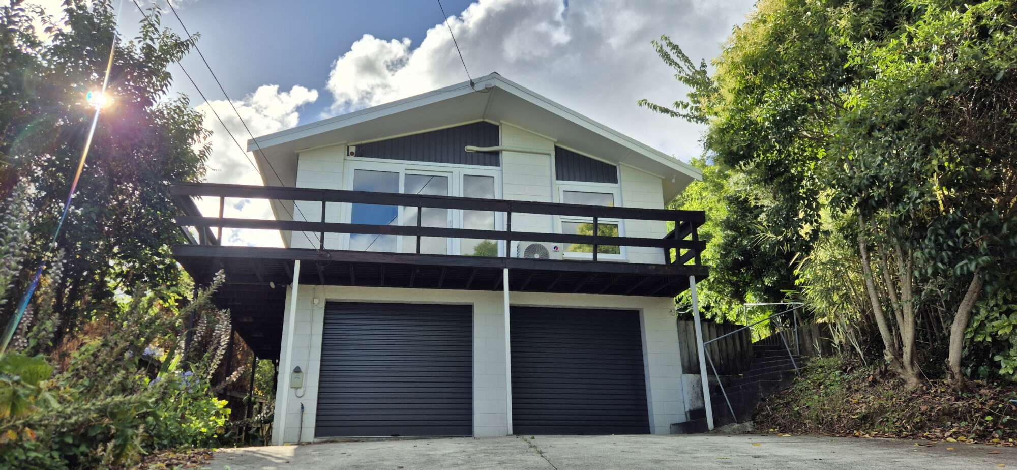 Asking Price $765,000 Three bedroom with some views from extensive decks. Double glazed and low maintenace exterior. Useful 766 sq m. section, some flat, some easy sloping. Double basement garage with auto roller doo