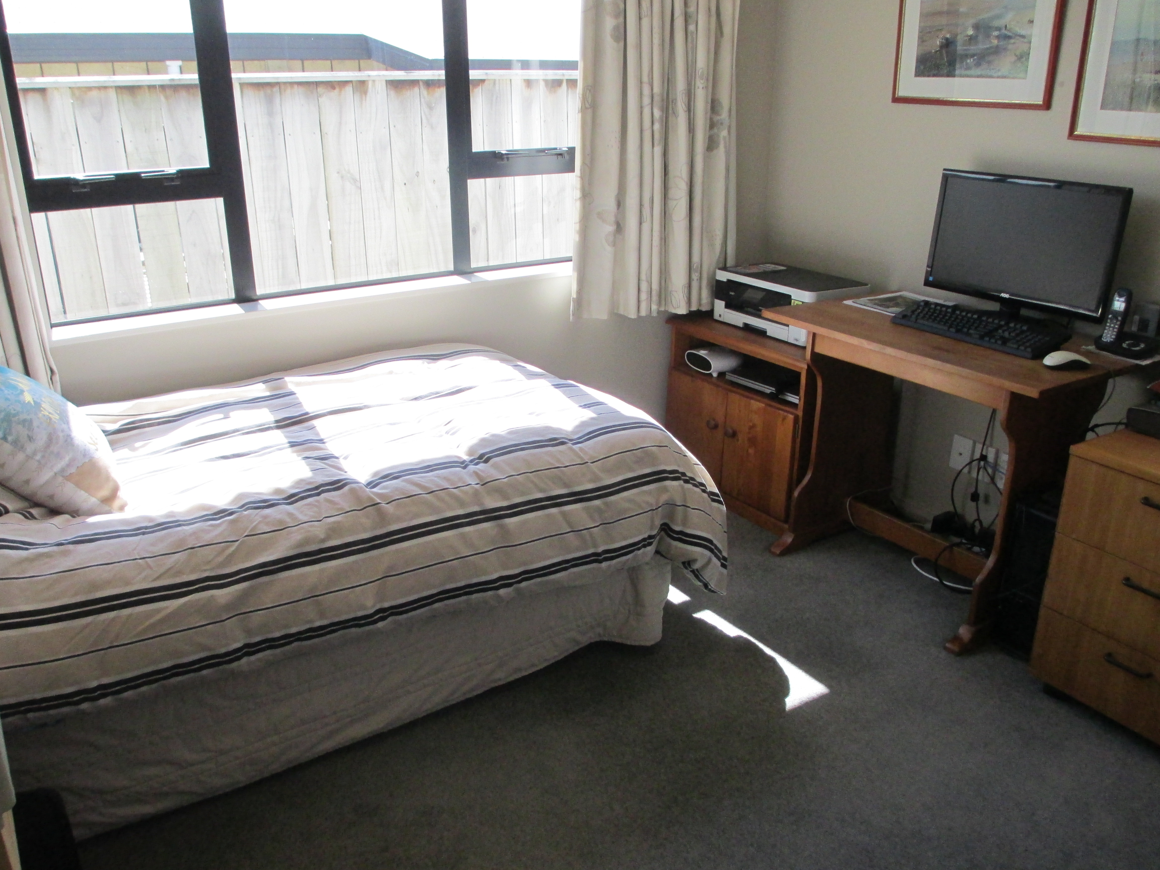 Tidy 3 bedroom home, open plan lounge and dining area into kitchen, large windows thro